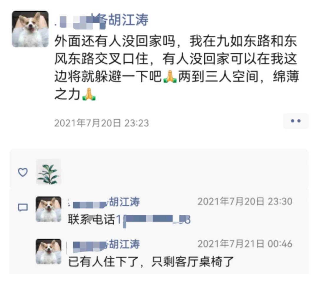 7月20日晚,郑州大雨滂沱,建业财务部胡江涛在朋友圈发布信息:周边被困人员可至家中休息。通过互相告知,正在附近吃饭的一家三口人联系到他,胡江涛为其收拾一间空房,收留这家人度过艰险的一夜。