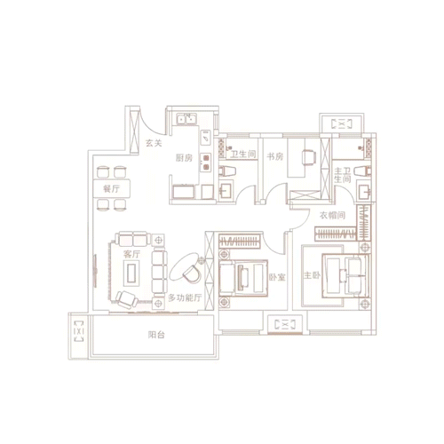 约5.1米大尺度宽厅设计,致敬人生宽境的同时,构造全家共融式生活场,品酒会友、家庭小聚、开Party......多重化空间,开启非凡社交领地。阔绰景观阳台之上,城市崛壮之姿与立体景观园林的风光尽收入眼底,它不仅是内与外交接的过渡空间,也是人生至此境更宽的视野犒赏。