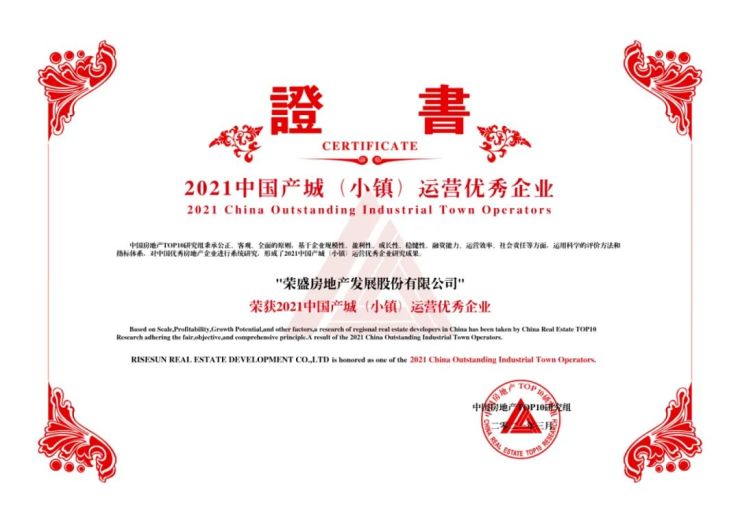 同时,荣盛发展还荣获2021中国房地产百强企业“融资能力”TOP10第4位及“运营效率”TOP10第7位、“2021中国产城(小镇)运营优秀企业”等多个单项奖项,旗下产业板块荣盛产业新城荣获“2021中国产业园区运营十强企业”,荣盛康旅首次进入中国房地产百强企业研究,获得“2021中国文旅地产运营优秀企业”第3位,康旅产业发展获得行业肯定。