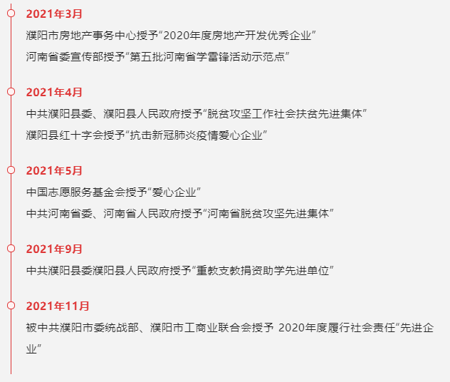 2021年华信集团,以精工彰显品牌实力,以头部房企速度赋新中原。荣获“河南省本土房企2021年1-9月销售金额、销售面积双17强” 、华信学府水岸荣获“2021年3季度濮阳销售面积第2名”(数据来源于河南克尔瑞排行榜)、华信学府水岸项目入围2021年度“河南省二十大品质人居产品”等多项荣誉,实力先进业绩斐然。