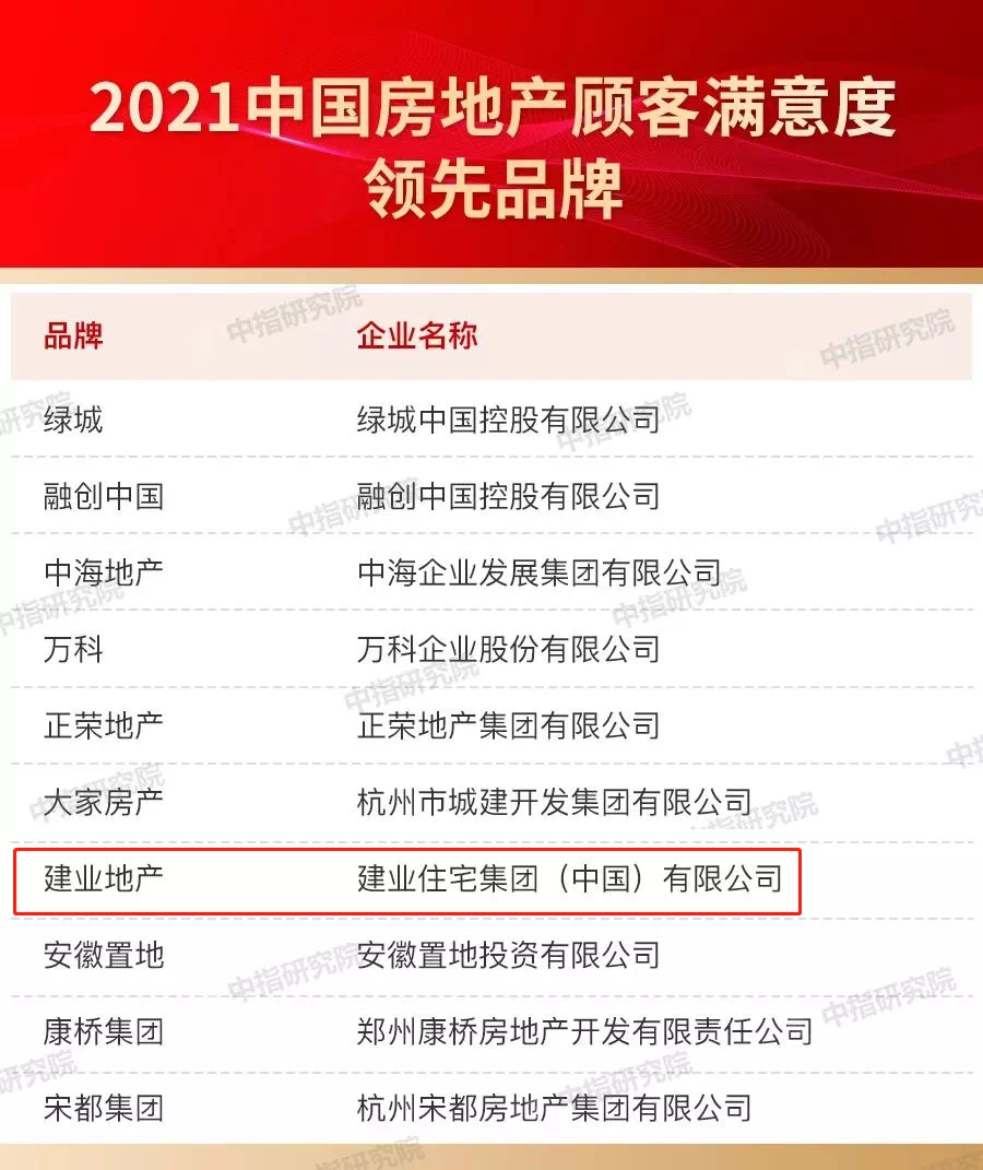 建业地产荣获“2021中国中部房地产公司品牌价值TOP10”“2021中国房地产顾客满意度先进品牌”;中原建业斩获“2021中国房地产代建先进品牌”;建业新生活荣膺“2021中国物业服务专业化运营先进品牌企业”“2021中国物业服务华中区域先进品牌企业”。
