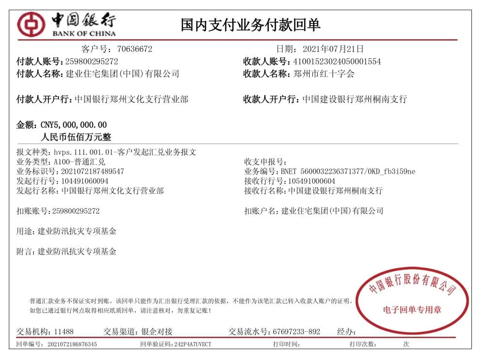 今年7月至8月,河南遭受汛情、疫情叠加冲击。建业根植中原,深爱家乡,在积极保护全省在管400余个小区业主的生命财产安全,全力维护社区、文旅、商业、农业等各项目安全的同时,排名前列时间向郑州市红十字会捐赠现金500万元,设立“建业防汛抗灾专项基金”,员工自发捐款累计达162.5万元,危难面前勇担责任,彰显担当,品牌美誉度进一步攀升。此外,集团排名前列时间投入灾后重建和修复中,全员迅速进入“战时状态”,全力应对汛情、疫情带来的双重考验,在危机中育新机,于变局中开新局。