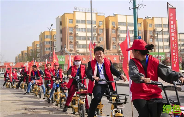 原来他们都是瑞璞五金建材城的商家老板,前几天,濮阳市启动重污染天气Ⅱ级(橙色)预警响应,为了呼吁大家爱护环境,低碳出行、绿色出行、环保出行,2018年3月28日上午9点,五金建材城运营管理公司组织所有知名商家老板齐聚瑞璞五金建材城,自发环濮阳县游行,决定用这种低碳环保的出行方式,呼吁大家用健康、绿色的方式出行,减少污染,为打赢这场环境攻坚战加油助力!