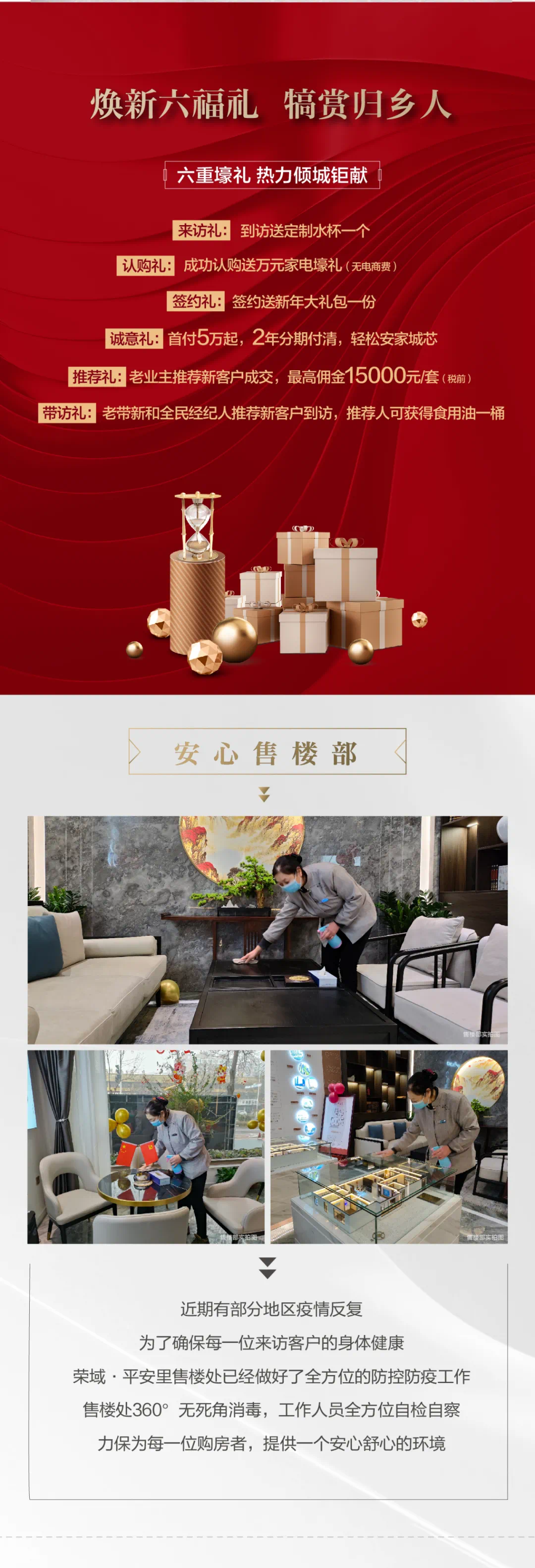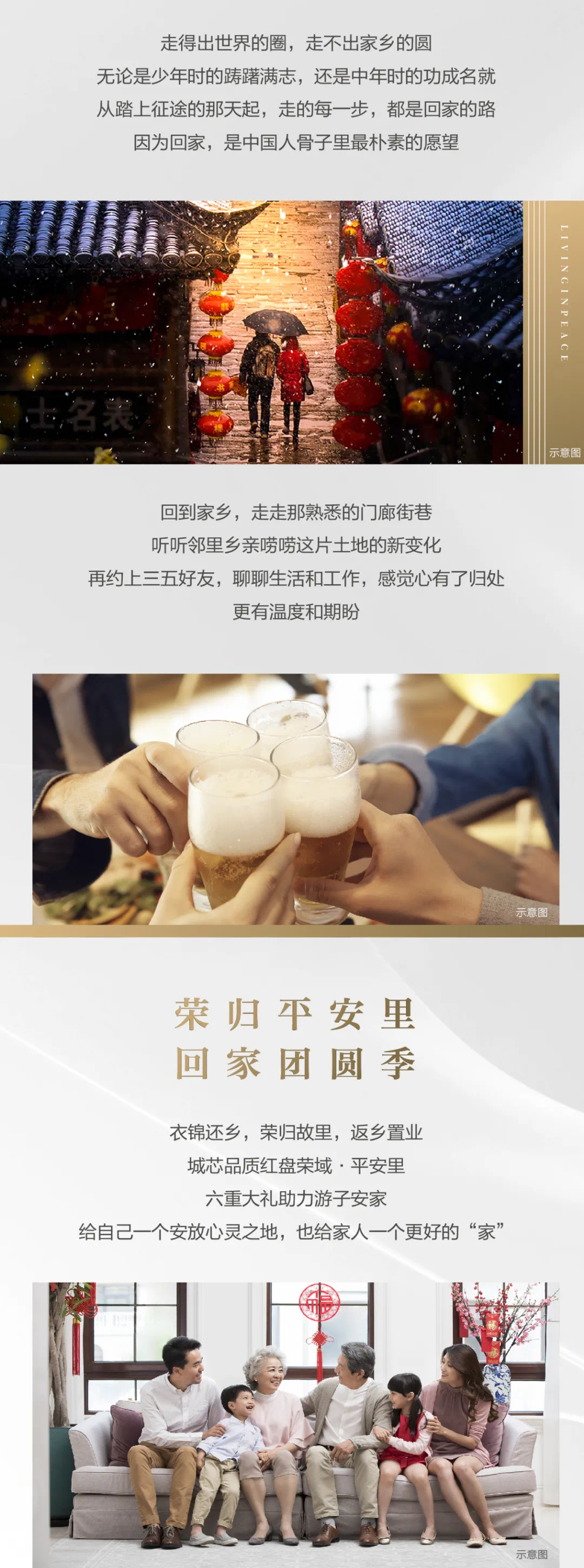 温馨提示: · 本项目推广名为“荣域·平安里”,核准名以地名办为准; · 本宣传资料为邀约邀请,不作为要约或承诺; · 本宣传资料中提到的商品房面积为商品房建筑面积,特别说明的除外; · 相关内容不排除因政府相关规划、规定及开发商未能控制的原因而发生变化,出卖人保留对宣传资料修改的权利,本