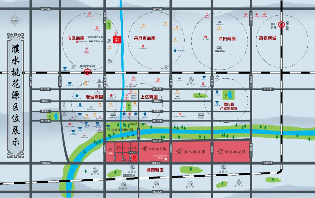 濮水桃花源项目位于濮阳县城南新区国家金堤河湿地公园以南(濮渠路与滨河路交汇处核心位置)东临北京师范大学——濮阳实验学校,南邻濮阳市中医院,西邻濮水小镇400余亩文旅景区,坐拥10.07公里万亩金堤河湿地公园,可谓是步移景异,小区东侧为桑涧公园,双+1自然公园环绕,成就您居住梦想。项目将打造约113万方城南宜居之地,秉持着严苛的品质标准,匠心雕琢每一寸建筑!产品涵盖瞰景高层观邸、低密洋房、国风合院,打造城南居住标杆。项目以加倍的努力,为您呈现家的幸福,让家的模样,美好如您所愿!